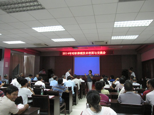 8?5日,中国水产科学研究院南海水产研究所在广州举办对虾养殖技术培训班,共有来自广东江门市、珠海市等地的对虾养殖户55人参加了培训?/P>