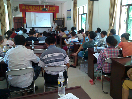 万宁市山根镇排溪村是该市目前最大的东风螺养殖基地,也是国家贝类产业技术体系海南综合试验站东风螺养殖技术示范基地和核心试验示范区,?010年以来,南海所专家已连?年在当地举办东风螺养殖技术培训班,对提高养殖人员的技术水平起到了积极的促进作用。在此次培训班上,针对目前当地东风螺养殖病害的困扰,国家贝类产业技术体系海南综合试验站儋州示范基地技术顾问冯永勤研究员就方斑东风螺无公害养殖技术规范进行了专门讲解,南海所叶乐副研究员就在该村进行方斑东风螺养殖病害防控模式试验情况以及取得的阶段性成果进行了通报,并现场解答了参训人员提出的问题?/P>