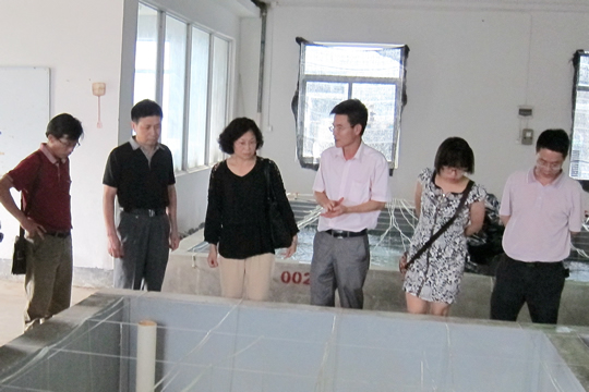 在基地期间,深圳基地主任林黑着向到访客人详细介绍了深圳基地的建设情况、运行管理及科研项目执行情况等,并陪同参观考察了基地的育苗生产车间、池塘养殖等科研设施情况。大家对深圳基地的建设和发展表示赞赏的同时,还围绕深圳海洋渔业发展现状以及政府扶持引导发展等进行了交流探讨?/P>