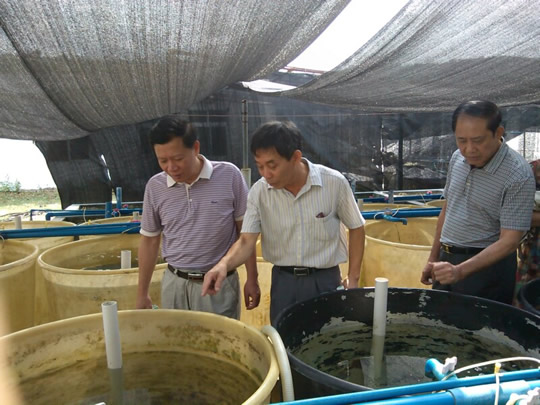 邢孔祥副主任一行亲临“小丑鱼养殖产业化中试及推广”实施现场考察,认真听取了叶乐副研究员关于项目实施情况的汇报,并详细了解了项目的实施过程、产业前景、社会经济效益及存在的问题?/P>