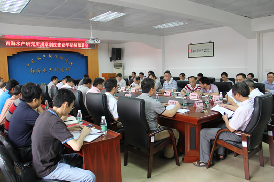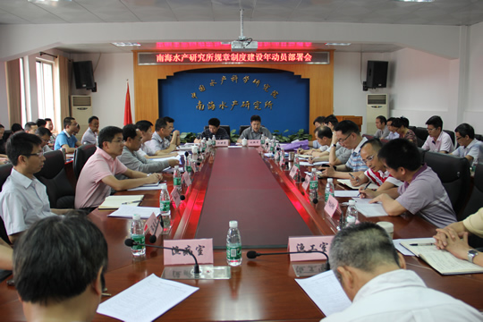 为巩固党的群众路线教育实践活动成果,切实把规章制度建设工作抓好抓实、抓出成效,4?1日,中国水产科学研究院南海水产研究所召开“规章制度建设年”工作动员部署会。所长江世贵主持会议,所党委书记刘新中作动员部署讲话,全所中层以上干部和学科组长等60多人参加了会议?/P>