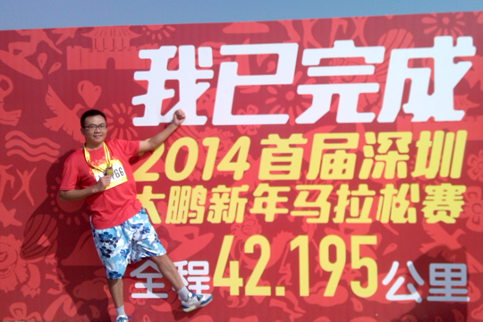 这次新年马拉松赛以关注跑者的快乐体验为目标,吸引了大批跑步爱好者参赛。南海所深圳基地青年职工黄小林表现突出,最终以顽强的毅力在42.195公里的山海赛道上跑完了全程,体验?014马拉松新年第一跑,不仅挑战了自我,更展示了南海所时代青年风貌,体现了“跑出健康、跑出快乐、跑出友谊”的“乐跑”精神?/P>