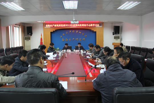 12?6日,中国水产科学研究院南海水产研究所党委召开理论中心组学习会议,集中学习党的十八届三中全会精神,交流学习成果,贯彻落实农业部党组中心组(扩大)学习会精神,紧密结合工作实际、聚焦发展中的突出问题开展研讨。所领导班子成员和各部门主要负责人、各在职党支部书记参加了学习。所党委书记刘新中主持学习会?/P>