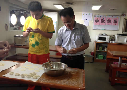 海上生明月,天涯共此时??9日是中国传统节日——中秋节。正在南沙海域执行“南海渔业资源调查与评估”项?013年第3航次调查任务的南海水产研究所科考队,仍然坚守在科考第一线,这已是“南锋”船连续3年在海上度过中秋佳节。为了让远离家乡、远离亲人的科考队员们感受节日的欢乐,9?9日,南海所科考队在“南锋”船上举行了简朴而隆重的欢度中秋活动?/P>
