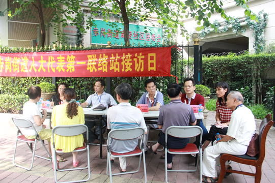 人大代表进社区开展接访,是代表密切与群众联系、了解民情民意、更好的履职尽责的一种行之有效的方式方法,切实体现“人民选我当代表,我当代表为人民”的庄严承诺。根据海珠区人大统一安排,区人大工委在赤岗街设立了人大代表社区联络站,陈平南同志担任为第一联络站站长?/P>