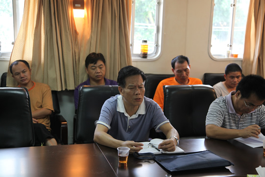 7?0日上午,南海水产研究所党委副书记陈平南带领办公室、财务处、条件处等部门负责人一?人,来到他的联系点——调查船基地调研指导党的群众路线教育实践活动,并在“南锋”号船上召开座谈会,听取一线党员群众对开展好教育实践活动的意见建议。分管调查船基地的杨北胜副所长、调查船基地主任林锡坤、副主任卢福以及“南锋”号船全体职务船员参加了座谈?/P>