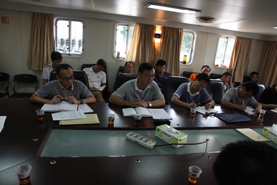 调查船基地负责人和“南锋”船船长、政委、轮机长、大副等分别结合工作岗位汇报了具体工作情况,对开展好教育实践活动作了表态,提出了一些好的意见和建议,并就做好有关具体工作与办公室、财务处、条件处等职能部门负责人进行了交流探讨?/P>