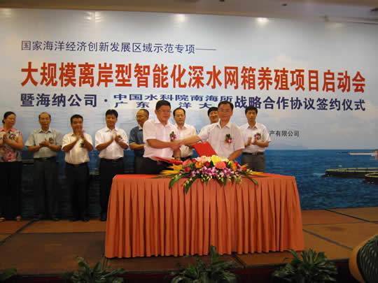 南海所与海纳公司构建全面战略合作关系,将共同致力于现代海洋渔业的科技创新和产业升级,以深水网箱、海洋牧场、水产品精深加工与冷链物流建设为重点,突破设施渔业养殖技术与装备系统集成创新、南海特色类型海洋牧场构建、水产品高效利用加工和质量保障、冷链物流体系整合等全产业链关键技术,共同推进现代海洋渔业科技成果转化示范园区、海洋渔业国家级、省部级技术工程中心、良种场、研发平台建设,共同推进海洋渔业专业技术人才与研发团队建设,构建高水平、高效益、高视角的现代海洋渔业产学研平台,促进科研机构创新成果的快速转化和企业自主创新能力的持续提升?/P>