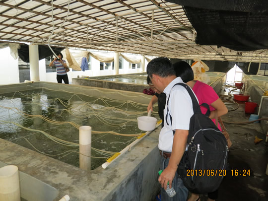 李纯厚副所长一行在广西海洋研究所杨家林、王志成副所长陪同下,考察了该所的竹林实验基地。李纯厚副所长参观了基地水产苗种繁育设施、水产品加工实验室,认真询问了广西海洋研究所的纵、横向课题收入、人员结构、水产苗种市场供求信息,详细了解广西海洋研究所科研创新、成果转化、人才队伍建设、激励措施等情况。广西海洋研究所杨家林副所长介绍了该所转企后发展战略调整的情况。双方就推进基地建设、吸引优秀领军人才的政策、措施及围绕北部湾现代海洋渔业产业发展的科技合作进行了深入全面交流?/P>