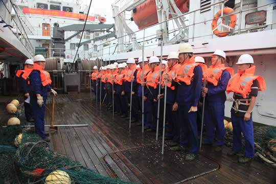 6?1日,南海水产研究所“南锋”号渔业科考船在赴南沙海域执行“南海渔业资源调查与评估”项?013年第2航次调查任务的途中,举行了一场反抓捕、反劫持及救生演练?/P>