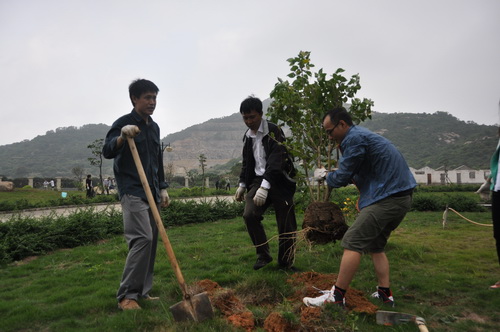 退团仪式后,刘新中书记、陈平南副书记,广东省直团工委李田书记等与参加此次退团仪式的青年们一起,为深圳试验基地植树近200棵,以此作为超龄团员告别共青团这一美好回忆的纪念,也作为南海所青年对“五一”国际劳动节和“五四”青年节的纪念?BR>