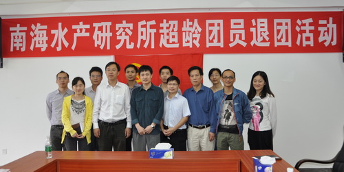 4?9日上午,中国水产科学研究研究南海水产研究所团委在深圳试验基地为超龄团员举行了简短而庄重的退团仪式。所党委书记刘新中、副书记陈平南,广东省直团工委书记李田等应邀出席仪式。退团仪式由所团委书记岑剑伟主持?