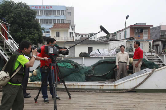 5?日,中央电视台中文国际频道(CCTV-4)《走进南海》摄制组在编导侯小宁的带领下,到中国水产科学研究院南海水产研究所进行现场采访拍摄。南海所所长江世贵研究员、渔业资源研究室主任邱永松研究员、渔业工程研究室杨吝研究员等在“南锋”号渔业科考船上分别接受了采访?/P>