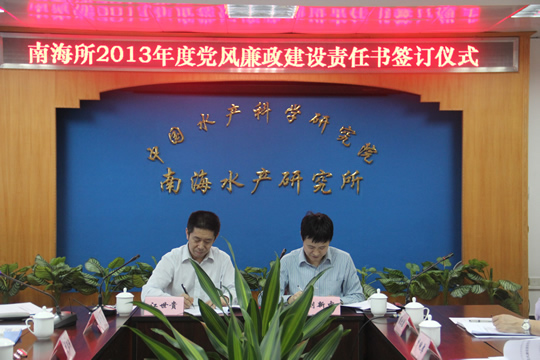 3?9日下午,南海水产研究所召开会议,传达学习习近平总书记在十八届中央纪委二次全会上的重要讲话精神,部署2013年全所党风廉政建设工作,并举行党风廉政建设责任书签订仪式。所领导班子成员、所长助理以及各部门、所办经济实体等主要负责?0多人参加会议。所党委书记刘新中主持会议?/P>