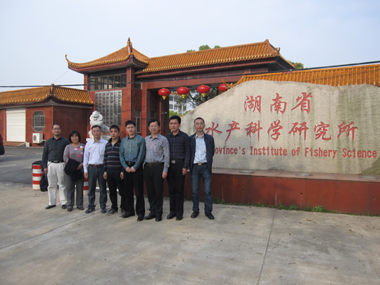 签约期间,刘新中书记一行于3?9日到湖南省水产科学研究所进行了交流考察,听取了伍远安所长关于该所基本情况的介绍。双方在科研成果转化机制创新、科技产业发展模式等方面进行了深入交流,并就加强和促进双方渔业科技合作方式及机制交换了意见?/P>