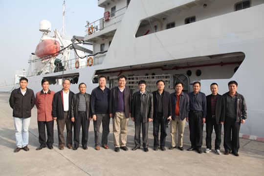 在“南锋”号调查船上,柳正书记首先对“南锋”号全体船员表示了亲切的节日慰问,指出“南锋”号调查船是一个先进的集体,近年来在圆满执行科考任务的同时,也突出了渔业在南海的存在,为推进南海渔业科技事业、维护国家海洋权益做出了很大贡献,他希望“南锋”号全体船员继承和发扬老一辈水产科技工作者的光荣传统,牢固树立责任感和使命感,艰苦奋斗、勇于担当,为国家、为渔业做出新的更大贡献?/P>