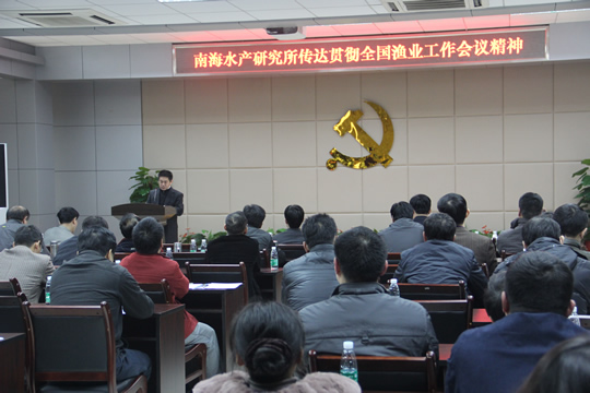 12?5日下午,南海水产研究所召开会议,集中传达贯彻全国渔业工作会议精神。南海所领导班子成员、各处室负责人和具副高级职称以上科技人员参加了会议?/P>