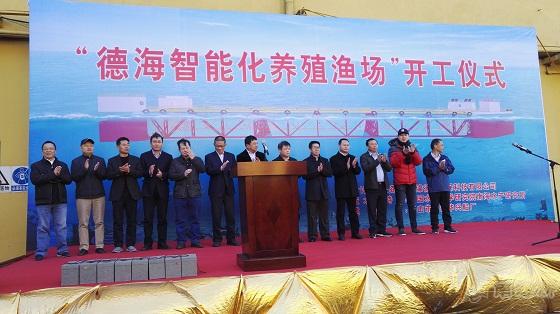 1?2日,由中国水产科学研究院南海水产研究所联合天津德赛环保科技有限公司共同研制的我国第一艘万吨级“德海智能化养殖渔场”在广东顺德华兴船厂正式开工建造。这是中国第一款万吨级半潜桁架结构,军民融合、产学研用、自主设计制造,具有完全知识产权的深远海养殖系统装备,预?018?月前投放珠海桂山岛海域养殖试产。南海水产研究所所长江世贵、副所长李纯厚,天津德赛环保科技有限公司总经理苏士林,广东省海洋与渔业厅副厅长洪伟东、海南省海洋与渔业厅副厅长李向民,东海水产研究所副所长王鲁民,以及中国水产科学研究院、珠海市万山区、北海市海洋与渔业局等单位领导和来自广东、海南、广西、辽宁、山东等?0余家深水网箱养殖企业负责人和嘉宾出席开工仪式?/p>