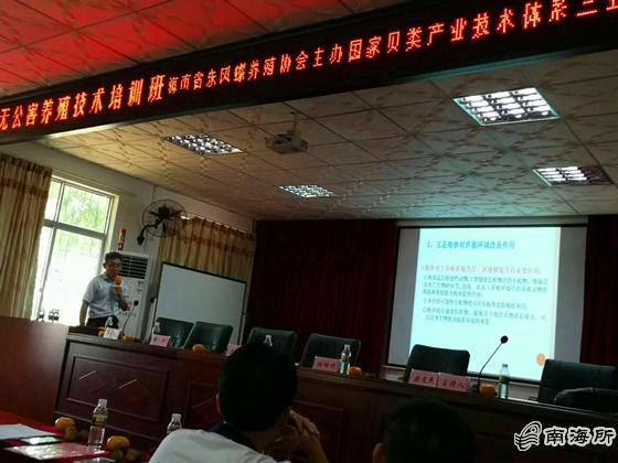 近日,由海南省东风螺养殖协会主办、国家贝类产业技术体系三亚综合试验站协办的“方斑东风螺无公害养殖技术培训班”在海南省文昌市会文镇举办。该协会会员和来自文昌、琼海、万宁、海口、澄迈等市县东风螺养殖技术骨?0多人参加了培训。国家贝类产业技术体系三亚综合试验站站长、中国水产科学研究院南海水产研究所热带中心吴开畅研究员出席培训班启动仪式并为培训授课?/p>