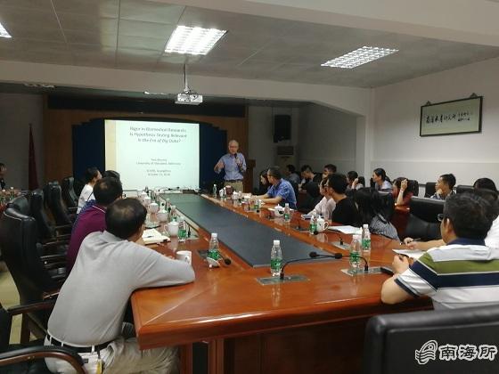 在所期间,Abrams教授重点与渔业生物病害防治研究室主任王江勇研究员科研团队,就“海兔神经节组织侵染模型”课题开展了合作研究与探讨,尝试开发可侵染模式生物神经系统的生物载体,丰富神经生物学的研究手段,为南海微生物资源开发和利用拓展了新的研究方向。此外,Abrams教授还以“Rigor in Biomedical Research: Is Hypothesis Testing Relevant in the Era of Big Data”为题作了学术报告,讲授了科学假设的定义、特征和检验方法,并阐述了新观点?/p>