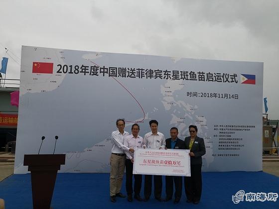 11?4日,由农业农村部渔业渔政管理局主办、中国水产科学研究院南海水产研究所和海南省农业农村厅联合承办中国赠送菲律宾第二?0万尾东星斑鱼苗启运仪式,在海南省文昌市清澜港码头顺利举行。农业农村部、外交部、海南省有关部门、菲律宾方面的代表和企业代表等赶赴码头,出席鱼苗远航菲律宾启运仪式。应菲方请求,还将有一万尾淡水鱼苗近期通过空运从广州发往马尼拉。作为组织实施单位,南海水产研究所党委副书记陈水胜、所长助理吴洽儿,中国水产科学研究院国际合作处副处长静莹等参加了鱼苗启运仪式?/p>