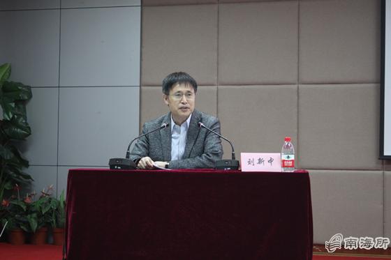 2018?2?8日,中国水产科学研究院南海水产研究所举办“改革开放四十年 中国渔业发展历程”报告会,特邀农业农村部渔业渔政管理局副局长刘新中作报告。南海所所长江世贵主持报告会,副所长杨北胜、李来好、李纯厚,党委副书记陈水胜以及科研人员、联合培养研究生?00多人参加了报告学习?a name="_GoBack">