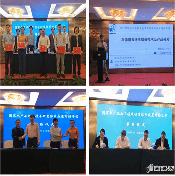 本次会议同期举行了水产品加工技术成果转化与需求发布。南海所先后发布了海藻膳食纤维制备技术及产品开发、鱼糜及鱼糜制品标准化加工技术等技术成果,分别与福建安井食品股份有限公司、百洋产业投资集团股份有限公司达成合作意向,并在现场成果对接仪式上签约。在水产品加工技术专家与企业代表互动讨论动环节,李来好研究员、薛长湖教授等专家学者就水产品绿色加工技术发展方向、主要加工技术瓶颈、协同创新与成果转化对接等多方面发表了自己的看法,并与水产品加工企业代表进行充分互动讨论,共话我国水产品加工行业现状、存在问题与发展方向,对提升我国水产品加工业绿色高质量发展献言献策?a name="_GoBack">