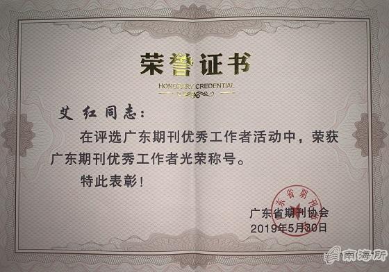 南海所艾红荣获“广东期刊优秀工作者”称?/h3>