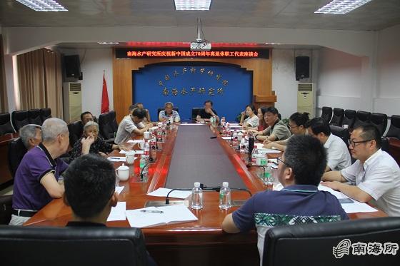为庆祝新中国成立70周年?7?日上午,按照农业农村部和广东省“增添正能量共筑中国梦”系列活动部署要求,中国水产科学研究院南海水产研究所组织召开离退休职工代表座谈会。所党委书记徐竹青、党委副书记陈水胜和部分老领导、老专家、老职工、老党员和相关部门负责同志等进行了交流座谈?