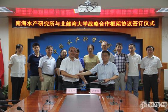 7?2日,北部湾大学副校长唐高华带领食品工程学院院长张晨晓、副院长蔡秋杏,海洋学院院长许尤厚一?人,就加强人才培养合作、共建科研平台等事宜,到中国水产科学研究院南海水产研究所开展工作交流,并签订战略合作框架协议。南海所所长江世贵、所党委书记徐竹青、所长助理吴洽儿和相关部门负责人接待了唐高华副校长一行,并进行了交流座谈?/p>