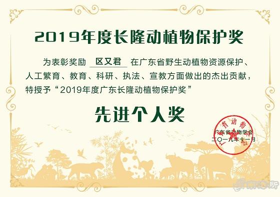 南海所区又君研究员获“广东长隆动植物保护奖先进个人奖?/h3>