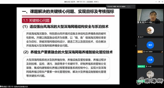 4?4日,国家重点研发计划“蓝色粮仓科技创新”重点专项“开放海域和远海岛礁养殖智能装备与增殖模式”项目启动会以视频会议形式召开。由中国水产科学研究院南海水产研究所承担的“大型潜浮式深海养殖网箱与智能装备研制”课题(2019YFD0900903)是该项目五个课题之一。课题负责人黄小华研究员参加启动会,并做专题汇报交流?/p>