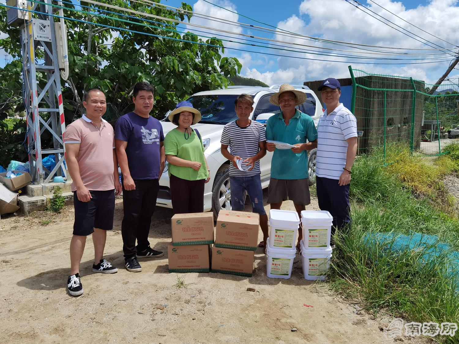 在省定贫困村汕尾石洲村,杨铿一行深入定点示范户开展现场技术指导,和养殖户进行面对面交流,详细解答大家提出的技术难点,重点讲授池塘环境调控的关键点和夏季放苗注意事项等,手把手指导他们如何放苗及判断虾苗质量等,并赠送了一批对虾养殖投入品及养殖技术资料,为促进当地水产养殖户实现稳产达产提供支持帮助?/p>