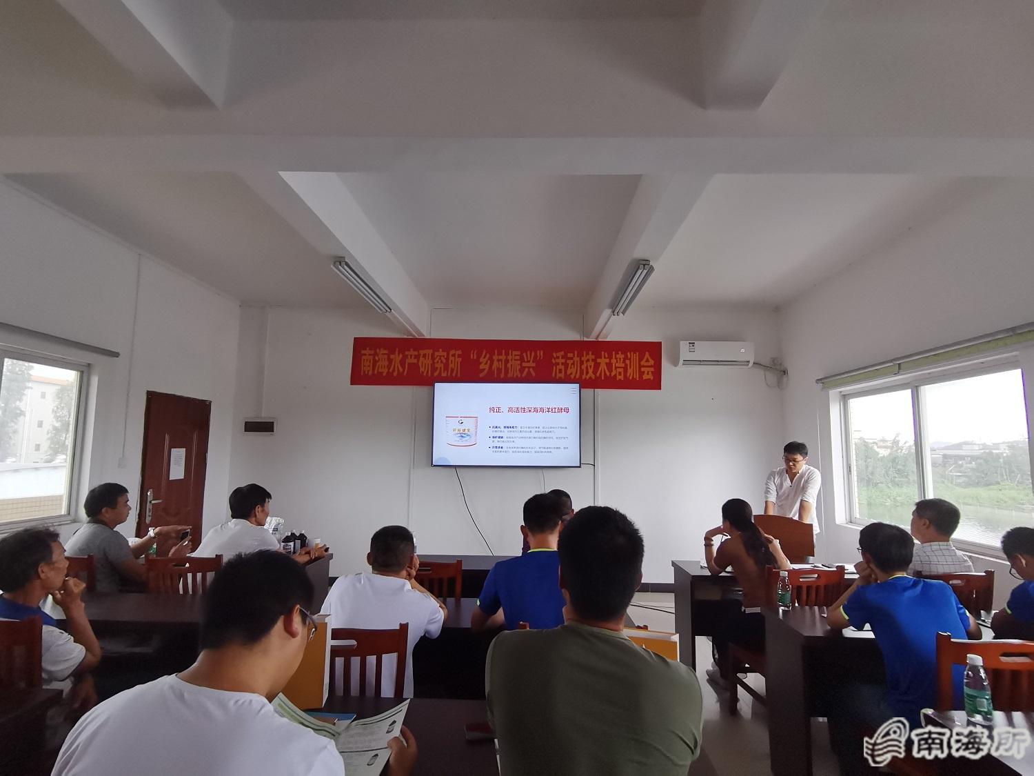 为加快培养新型职业渔(农)民,切实为推进乡村振兴和农业农村现代化提供人才支撑,近日,中国水产科学研究院南海水产研究所在珠海基地启动了“乡村振兴”技术培训系列活动,持续助力珠海渔业高质量发展。南海所成果转化处和渔病室、养殖室以及广州欣海利生生物科技有限公司、广州卢卡科技有限公司等负责人出席活动现场,来自当地有关种苗、养殖、动保、饲料等水产行业从业?0余人参加了技术培训?/p>