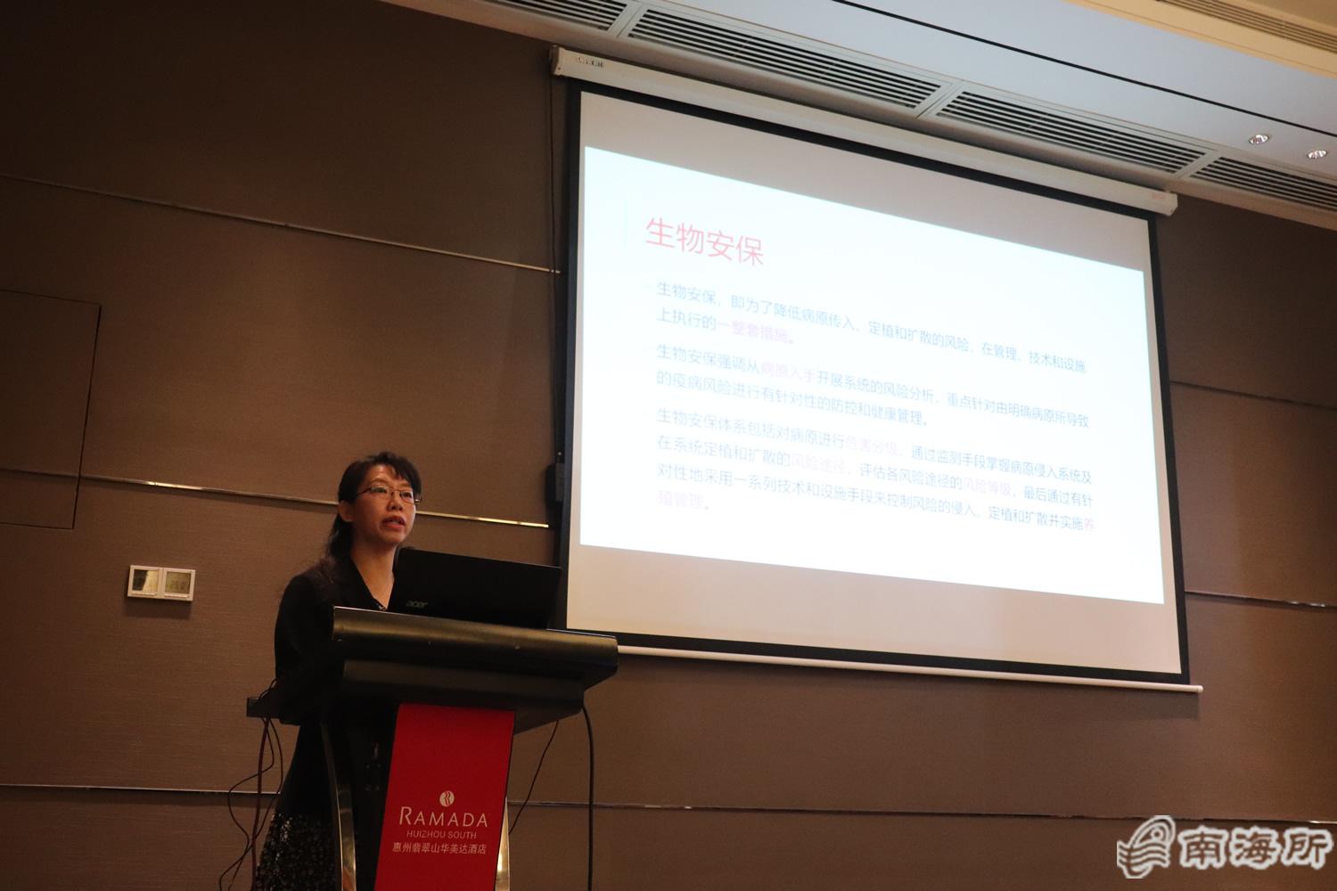 会上,冯娟作了水产良种健康养殖之病害管理报告,强调病害管理在水产良种健康养殖的重要性,提出生物安保要对病原进行危害分级,通过监测手段掌握病原侵入系统及在系统定植和扩散的风险途径,评估各风险途径的风险等级。杨铿作了题为《微生态制剂的特性、功效及水产养殖过程中的应用》的报告,对微生态制剂的应用作为抗生素的替代品逐渐成为水产养殖动物病害防治的一种生物控制模式进行了全面阐述?/p>