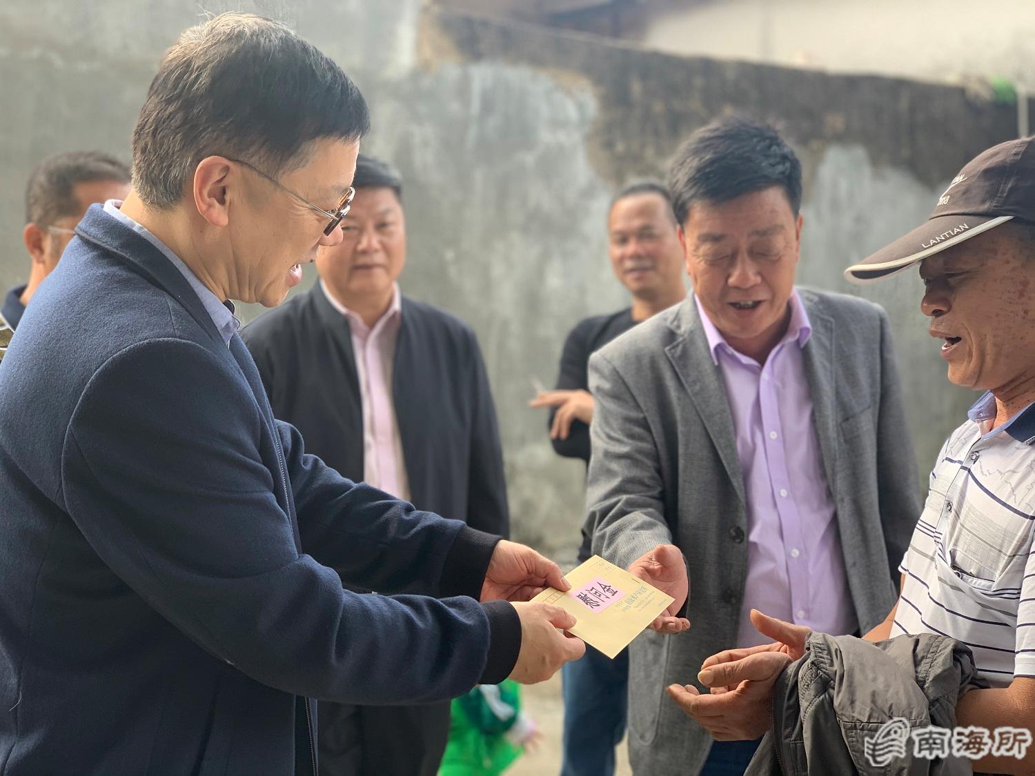 12?日,中国水产科学研究院党组成员、纪检组组长于书洲带队深入南海水产研究所定点帮扶的汕尾市陆丰市金厢镇望尧村,调研督导脱贫攻坚工作,看望驻村扶贫工作队干部,并慰问部分困难群众。所党委副书记、纪委书记陈水胜,珠江水产研究所党委书记张明富和金厢镇主要领导等参加调研督导?/p>