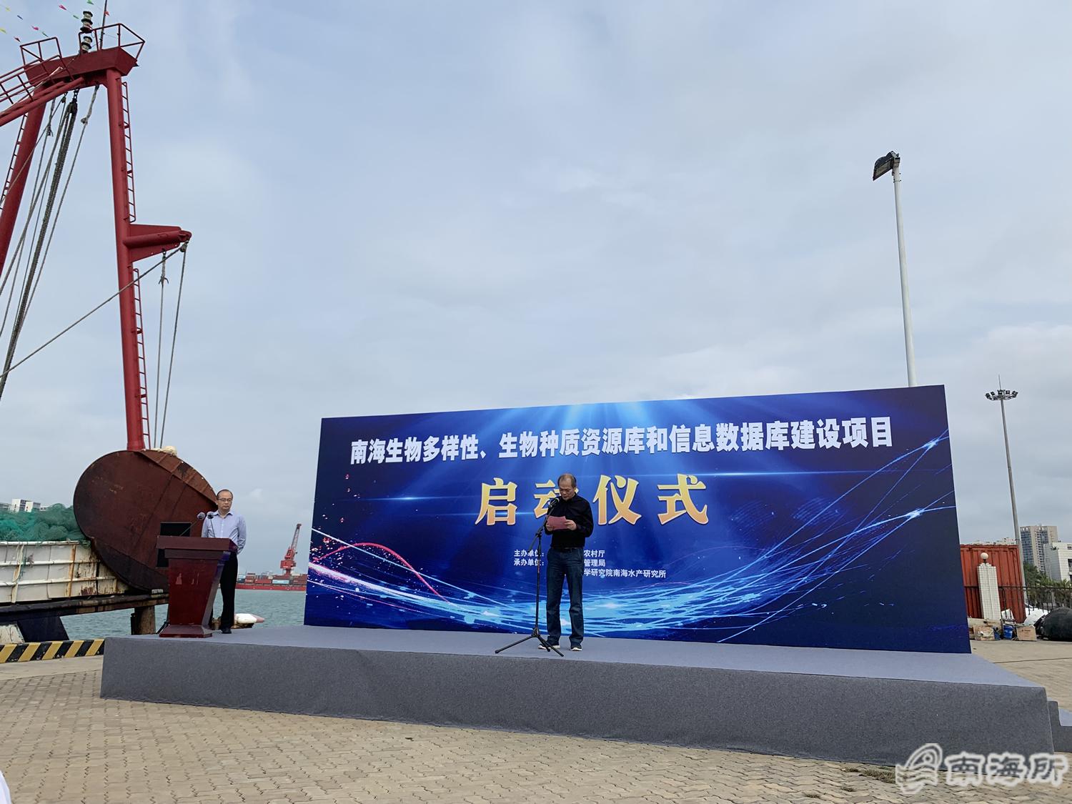 3?日上午,由海南省农业农村厅主办、海南省南繁管理局和中国水产科学研究院南海水产研究所联合承办的海南省农业农村厅重点项目“南海生物多样性、生物种质资源库和信息数据库建设”启动仪式在海南省海口市渔政海监码头举行。海南省农业农村厅、海南省南繁管理局等单位的领导和代表,南海所副所长吴洽儿、所长助理张殿昌、科研处处长于刚、热带中心副主任(主持工作)马振华及项目组成员等参加了启动仪式,欢送项目科考调查船?/p>
