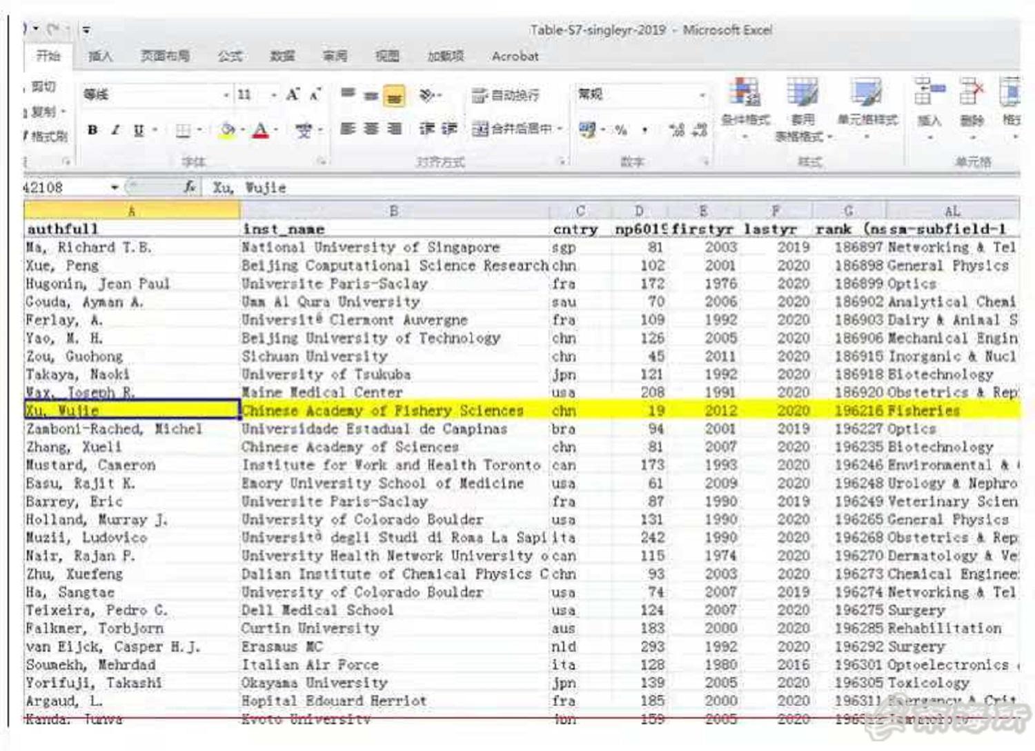 近日,全球前2%顶尖科学家(World’s Top 2% Scientists 2020)?019年度科学影响力排行榜”由美国斯坦福大学与全球知名学术出版商Elsevier旗下Mendeley Date发布。该榜单以Scopus数据库为依据,基于总引用量、Hirsch H-index、Schreiber Hm-index因子等综合指标,根据其“生涯影响力”和“年度影响力”,从全球近700万名科学家中遴选出世界排名?%的科学家,排名分22个领域和176个子学科领域。中国水产科学研究院南海水产研究所徐武杰(Xu, WuJie)博士和谷阳?Gu,YangGuang)博士入选该排行榜?/p>