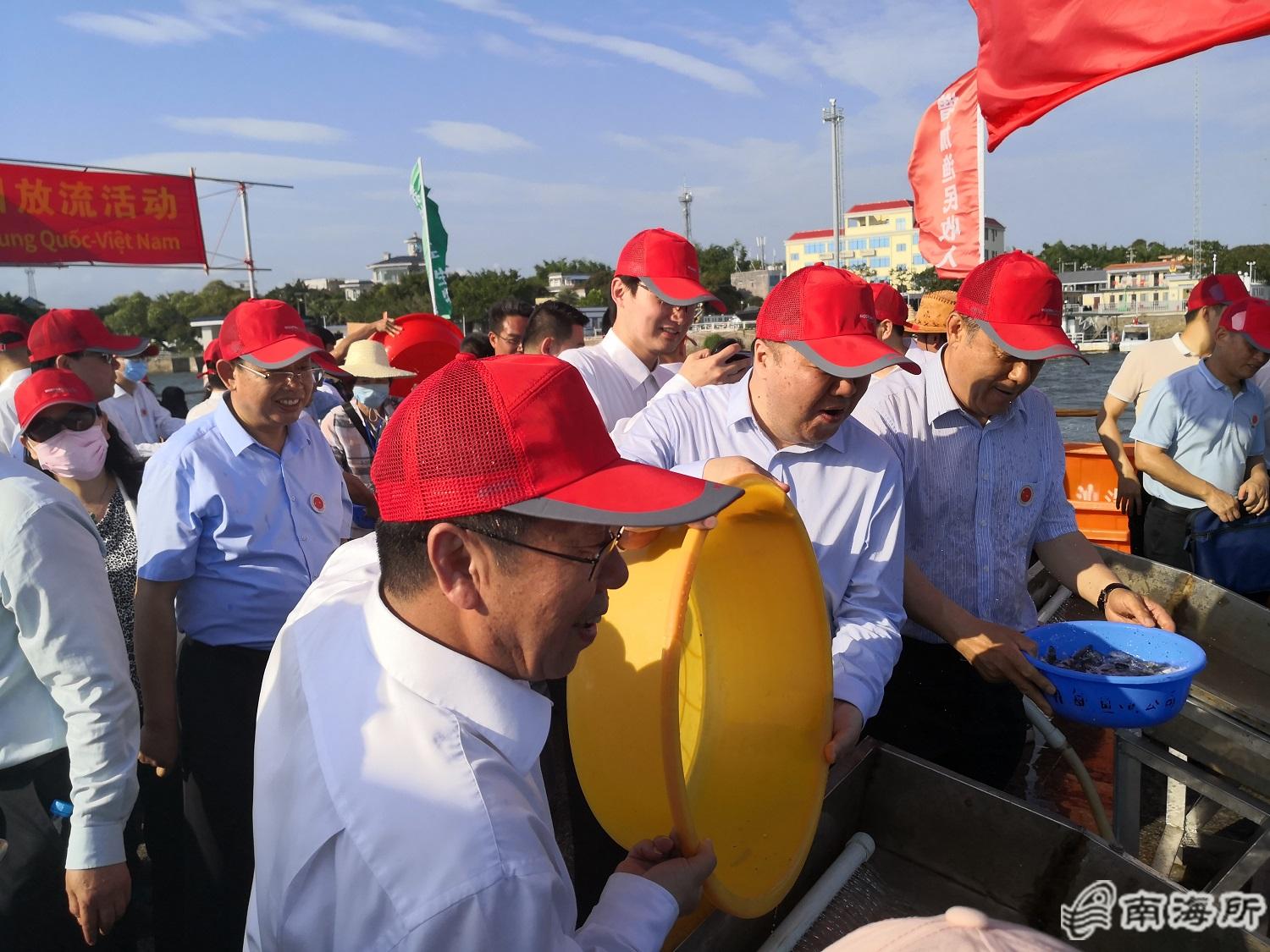 中央外办、外交部、农业农村部、中国海警局等部门,广东、广西、海南三省有关地方与部门,越南驻华大使馆代表参加了启动仪式和放流活动?/p>