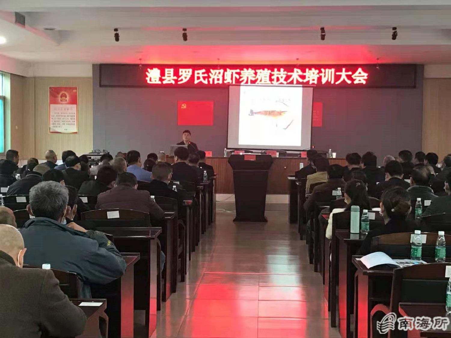 为进一步推进与湖南省常德市渔业科技合作,助力当地罗氏沼虾养殖产业高质量发展,近日,中国水产科学研究院南海水产研究所杨铿副研究员、徐武杰博士等一?人组成专家组,赴湖南省常德市澧县开展罗氏沼虾养殖技术培训和指导,切实发挥有力的科技支撑作用。来自澧县各乡镇的水产养殖户140多人参加了养殖技术培训?/p>
