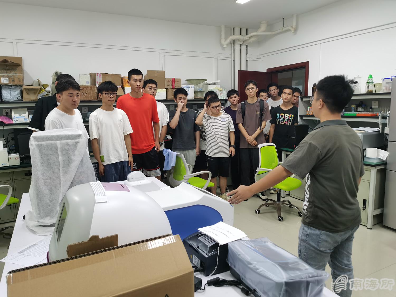 学习实践期间,大学生们听取了热带中心基本情况介绍,分成三组依次参观了热带中心的各实验室和实验车间,全面了解了各主要实验仪器和设备的性能及操作方法,充分学习了南海所和热带中心近年来围绕“四个面向”重点开展的渔业科研创新工作及取得的重要科研成果,与科研人员进行了热烈交流?nbsp;