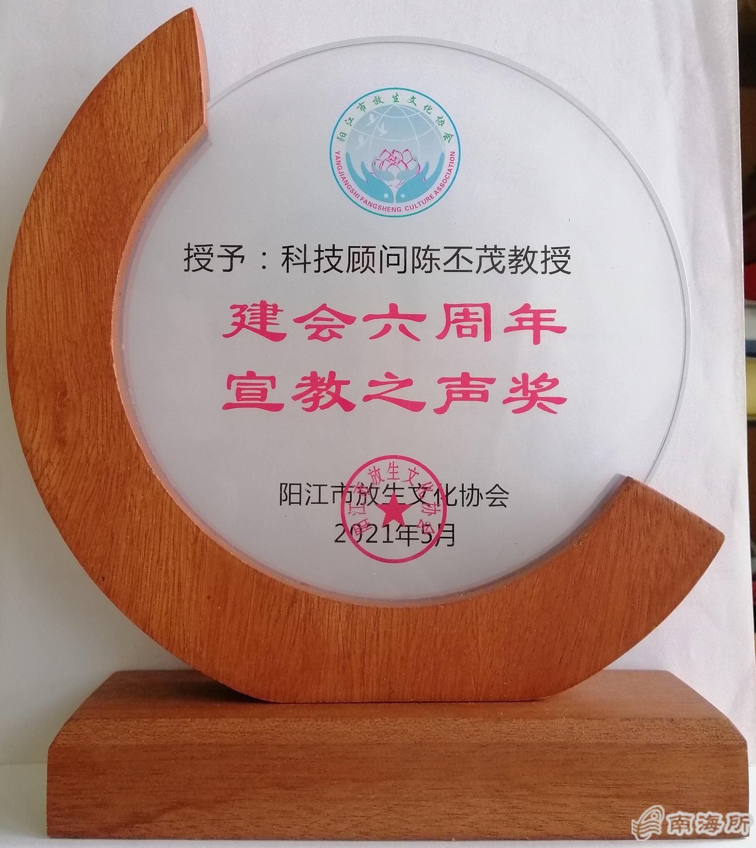 南海所陈丕茂研究员获阳江市放生文化协会“建会六周年宣教之声奖?/h3>
