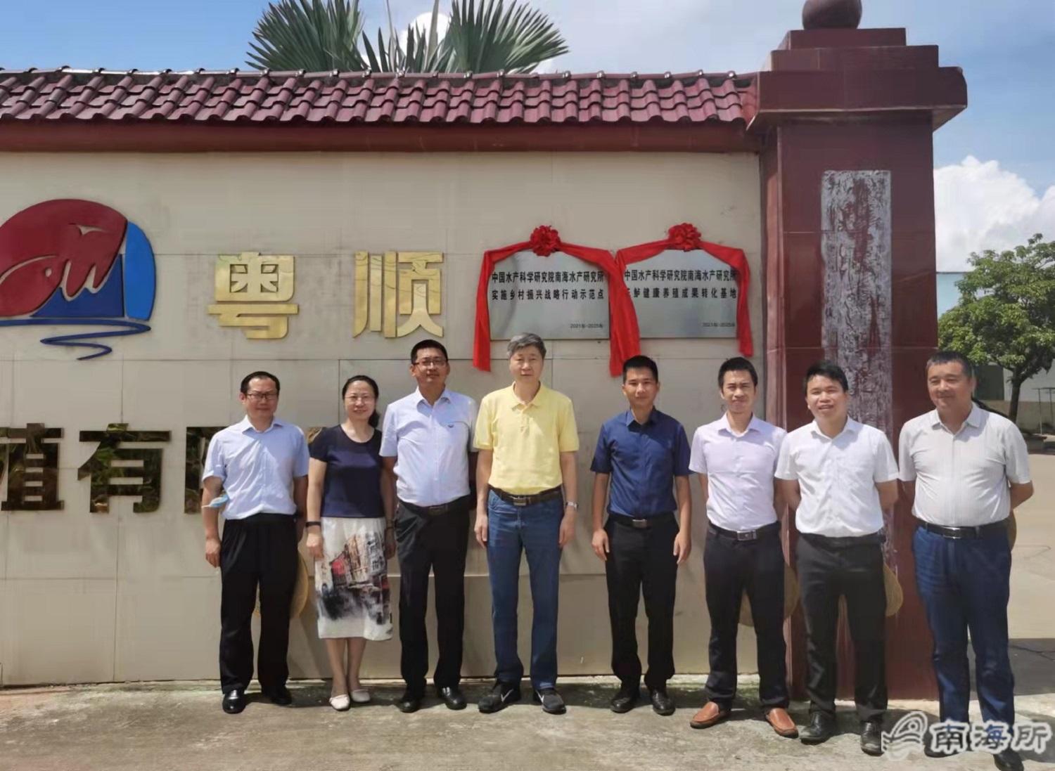 9?日,按照中国水产科学研究院南海水产研究所乡村振兴科技支撑行动实施计划有关安排,南海所与广东省珠海市斗门区乾务镇政府签订乡村振兴合作框架协议,并在珠海粤顺水产养殖有限公司举行“中国水产科学研究院南海水产研究所实施乡村振兴战略行动示范点”揭牌仪式,以科技助力当地渔业转型升级和绿色发展?/p>