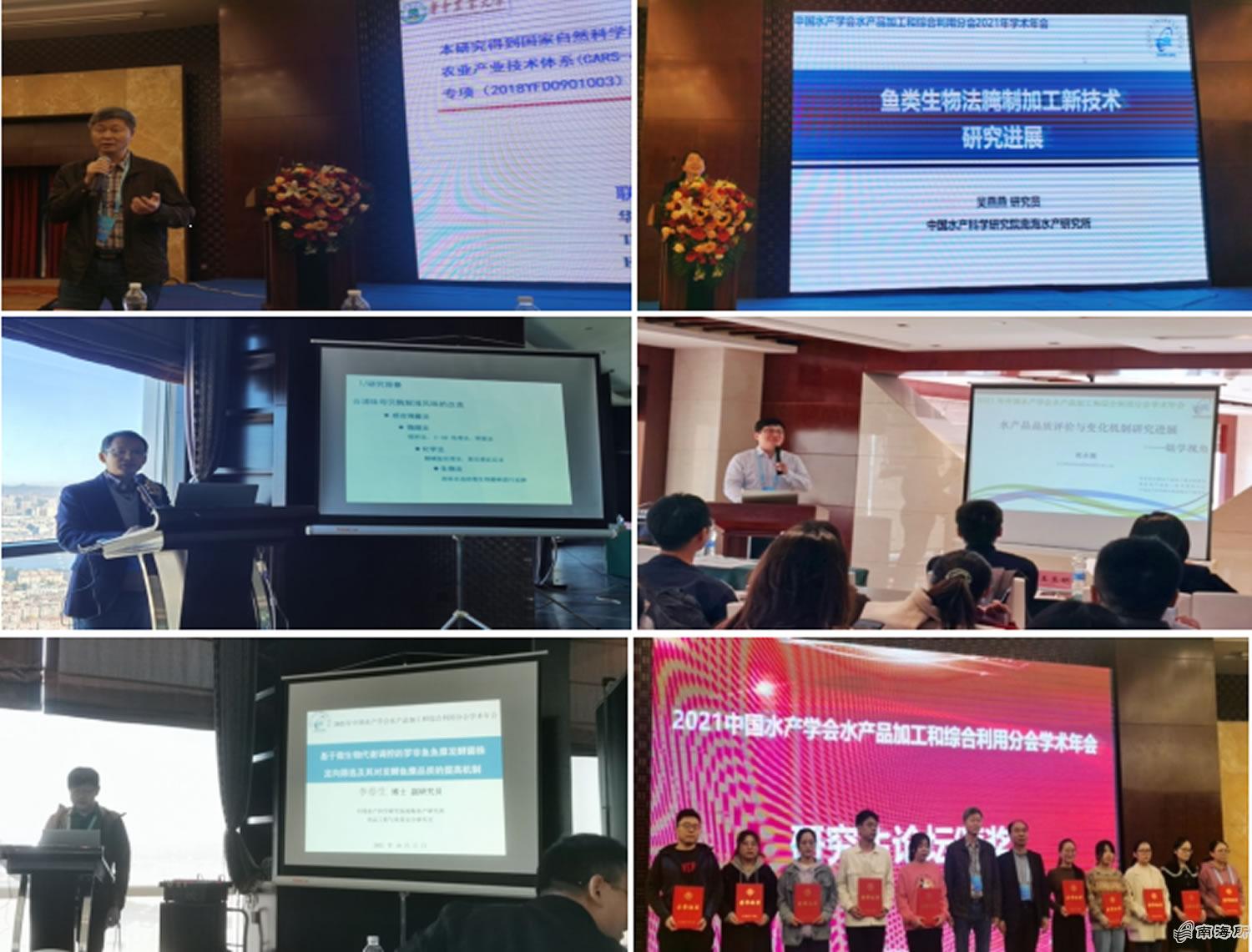 近日,中国水产学会水产品加工和综合利用分?021年学术年会在渤海大学召开。中国水产科学研究院南海水产研究所副所长李来好研究员出席会议,所相关研究领域科研人员和联培研究生等参加了会议,与同行专家围绕水产品加工与质量安全领域前沿技术与发展趋势、增强我国水产品加工自主创新能力、促进我国水产加工业转型升级和持续发展等进行了深入交流探讨?/p>