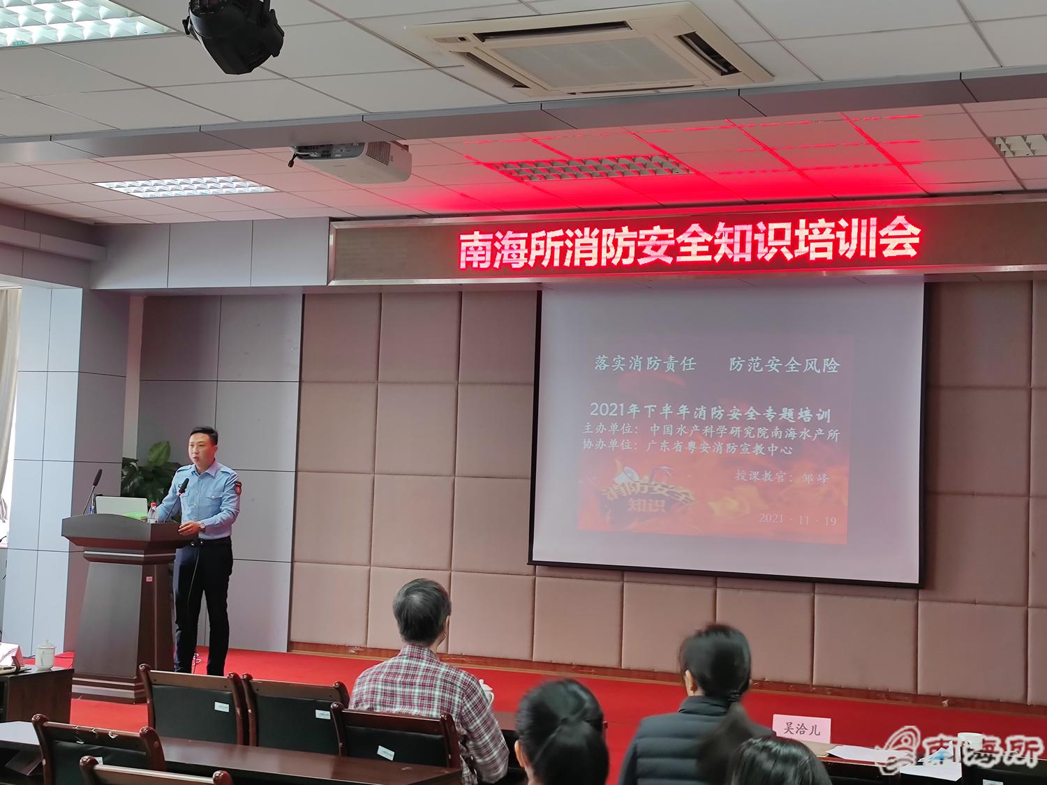 为进一步提升干部职工消防安全意识,严格落实消防责任,切实防范安全风险,11?9日,中国水产科学院研究院南海水产研究所组织开?021年度消防安全培训及演练。南海所在家所领导、干部职工、联合培养研究生以及相关物业代表等参加此次活动?/p>
