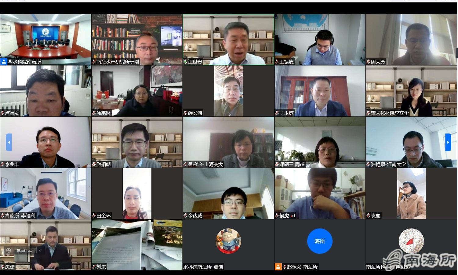 近日,中国水产科学研究院南海水产研究所牵头承担的国家重点研发计划“蓝色粮仓科技创新”专项“水产品高质化生物加工新技术与产品开发”项目以视频会议形式召开2021年度总结会。科技部中国农村技术开发中心卢兵友处长和王振忠、鲁淼、迟海等专员以及中国海洋大学薛长湖教授、浙江海洋大学严小军研究员、大连工业大学周大勇教授、广东海洋大学章超桦教授、江西师范大学涂宗财教授、浙江工业大学丁玉庭教授、中国水产科学研究院渔业机械仪器研究所沈建研究员等专项总体专家、项目咨询专家组专家在线出席会议,南海所所长江世贵、副所长李来好和项目课题相关负责人、技术骨干等参加会议?/p>