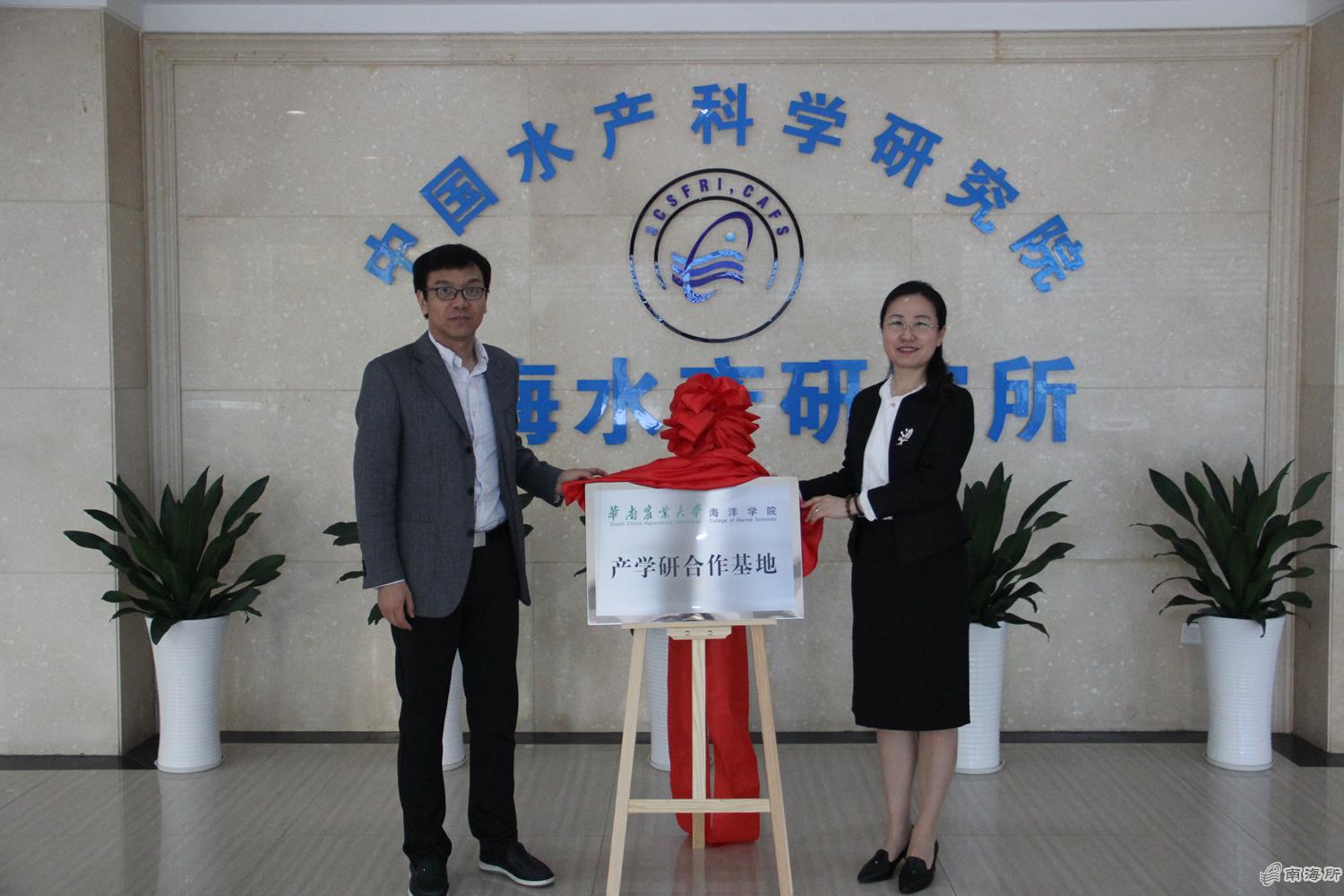 近日,中国水产科学研究院南海水产研究所与华南农业大学海洋学院联合举办“实践教学基地”“产学研合作基地”揭牌仪式。南海所党委书记程洁和所相关部门负责同志,华南农业大学海洋学院副院长杨慧荣、党委副书记彭金富等参加揭牌仪式?/p>