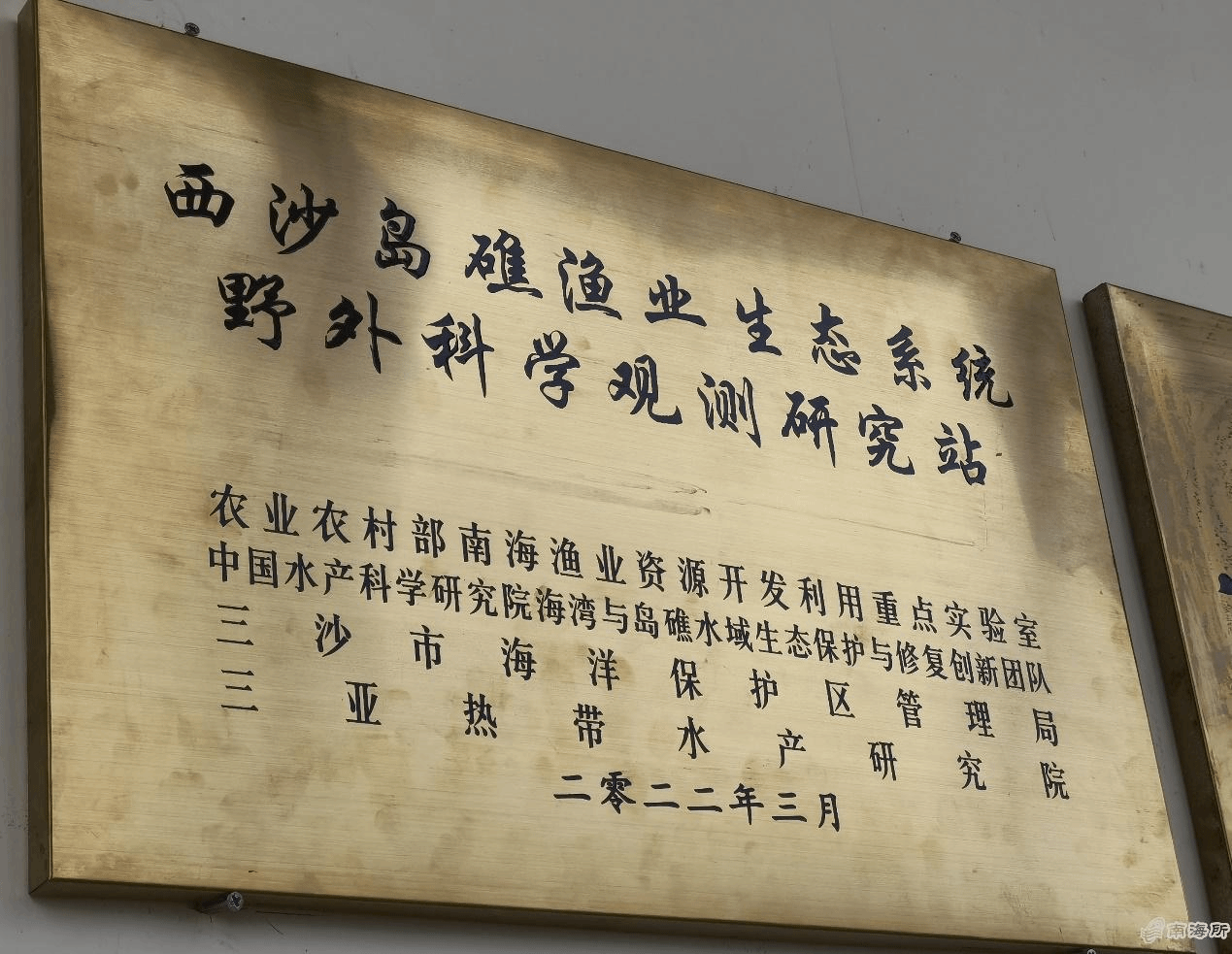 2022??0日,由中国水产科学研究院南海水产研究所与三沙市海洋保护区管理局合作共建的西沙岛礁渔业生态系统野外科学观测研究站在西沙北岛正式挂牌。三沙市海洋保护区管理局局长刘云腾、南海水产研究所副所长李纯厚共同主持挂牌仪式,三沙市海洋保护区管理局李育培副局长和欧行光工程师,南海所刘永副研究员、吴鹏副研究员、王腾博士、林琳博士、肖雅元助理研究员等参加挂牌仪式?/p>