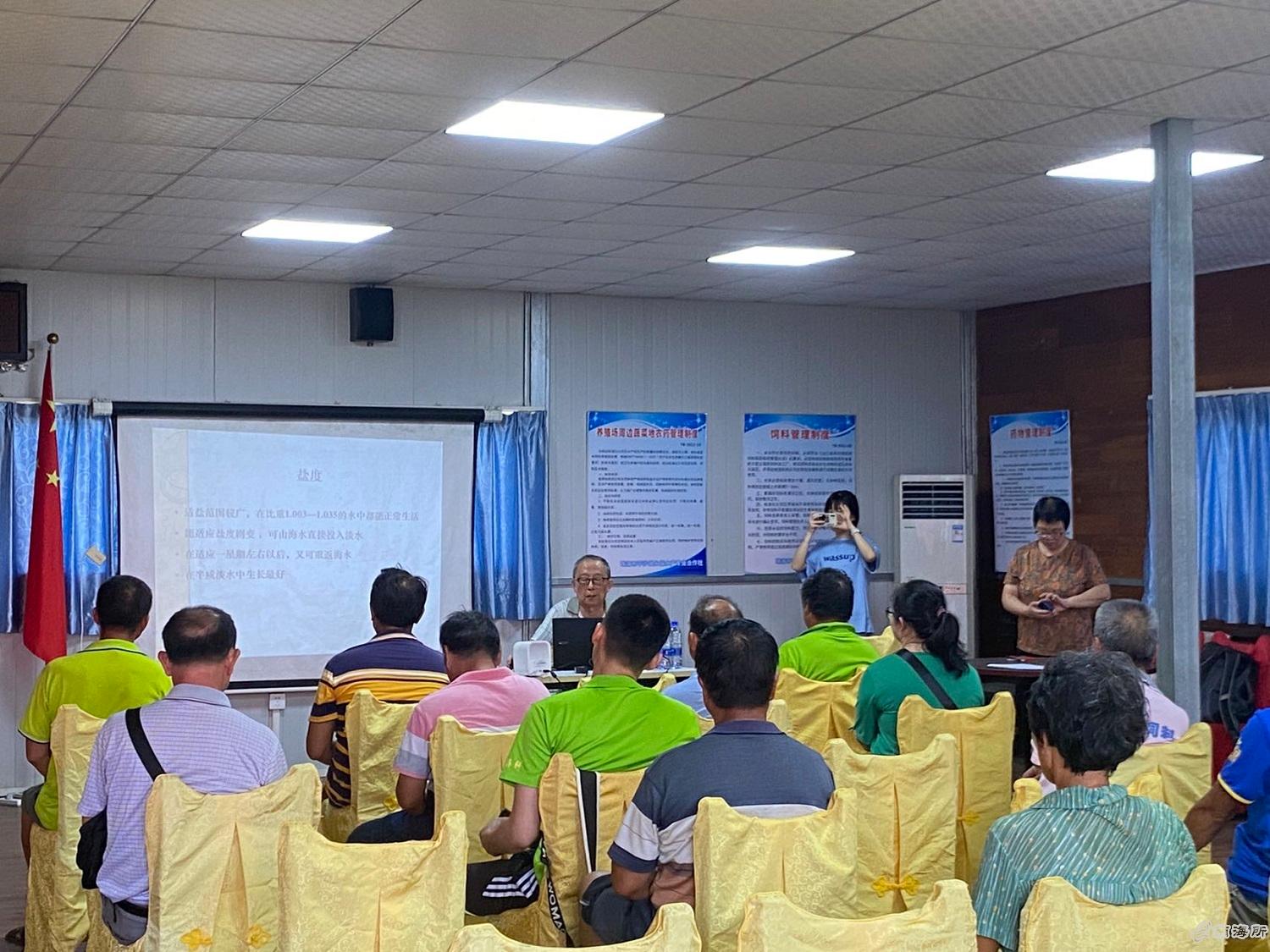 南海所专家结合当地养殖实际和存在的问题,在培训班上进行针对性授课,重点讲解了重要养殖品种马鲅和黄鳍鲷的人工繁殖、苗种培育、大规格鱼苗标粗养殖、成鱼养殖、安全生产等方面的关键技术,随后深入养殖现场,与养殖户进行互动交流,实地解决养殖过程中出现的问题,取得良好效果?/p>