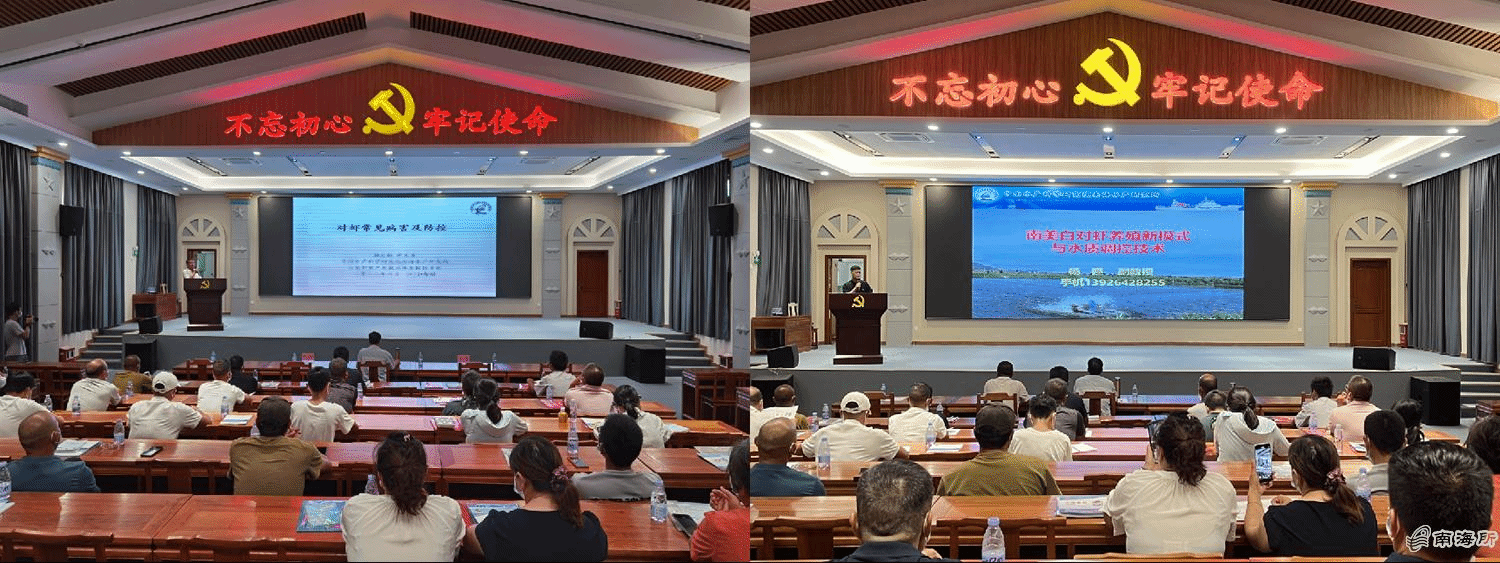 2022??3日,中国水产科学研究院南海水产研究所郭志勋研究员、杨铿副研究员应邀出席广东省江门市动物疫病预防控制中心举办的?022年对虾绿色健康养殖病害防控暨养殖规范用药培训班”开班式,并作专题学术讲座,为科学有效防治对虾养殖病害、提高对虾养殖病害防控能力和规范用药意识发挥支撑作用,积极助力广东农技服务“轻骑兵”乡村行工作取得实效?/p>